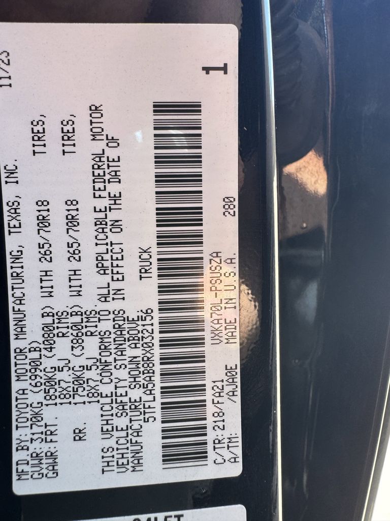 Bluetooth, Hands-Free Connections, Navigation / GPS / Telematics, Portable Audio Connections, Premium Audio, Backup Camera, Premium Wheels, High Performance Tires, Towing Package, Tundra SR5, 4D CrewMax, 3.4L V6, 10-Speed Automatic, RWD, Midnight Black Metallic, Black w/Fabric Seat Trim (FB) or SofTex Seat Trim or Fabric Seat Trim, Fabric Seat Trim (FA), SX Package, Wheels: 18" x 7.5J.