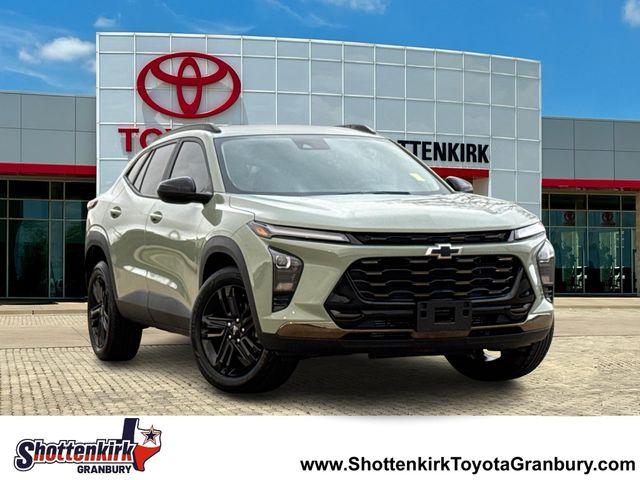 Recent Arrival! CARFAX One-Owner. 2025 Chevrolet Trax ACTIV 4D Sport Utility ACTIV Cacti Green 1.2L I3 DI Turbocharged DOHC 12V LEV3-ULEV70 137hp 6-Speed Automatic FWD This vehicle comes well equipped with Driver Confidence Package (Adaptive Cruise Control, Lane Change Alert with Side Blind Zone Alert, Rear Cross-Traffic Alert, and Rear Park Assist), License Plate Front Mounting Package, Preferred Equipment Group 1SA, Trax ACTIV, 4D Sport Utility, 1.2L I3 DI Turbocharged DOHC 12V LEV3-ULEV70 137hp, 6-Speed Automatic, FWD, Cacti Green, Jet Black With Artemis Accents Premium Synthetic, 8-Way Power Driver Seat Adjuster, Auto High-beam Headlights, Brake assist, Bumpers: body-color, Delay-off headlights, Electronic Stability Control, Exterior Parking Camera Rear, Fully automatic headlights, Heated door mirrors, Panic alarm, Power door mirrors, Power driver seat, Power steering, Power windows, Remote keyless entry, Security system, Speed control, Spoiler, and Steering wheel mounted audio controls.