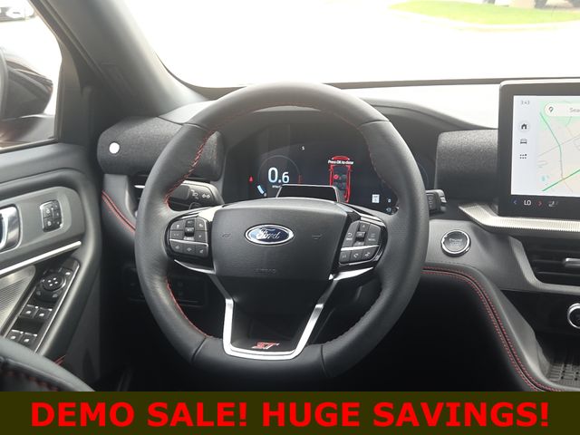 CARFAX One-Owner. APPLE CAR PLAY, ANDROID AUTO, BLUETOOTH, POWER MOONROOF/SUNROOF, HEATED FRONT SEATS, COOLED FRONT SEATS, BLIND SPOT MONITOR, Explorer ST, 3.0L EcoBoost V6, 10-Speed Automatic, 4WD, 3rd row seats: bench, Apple CarPlay/Android Auto, Auto High-beam Headlights, Auto-dimming Rear-View mirror, B&O Sound System by Bang & Olufsen, Brake assist, Delay-off headlights, Electronic Stability Control, Equipment Group 400A Standard Package, Exterior Parking Camera Rear, Front reading lights, Garage door transmitter, Heated front seats, Heated/Ventilated Miko Sport Captain's Chairs, Knee airbag, Memory seat, Power Liftgate, Radio: B&O Sound System by Bang & Olufsen, Ventilated front seats. This vehicle comes well equipped with Equipment Group 400A Standard Package, Explorer ST, 3.0L EcoBoost V6, 10-Speed Automatic, 4WD, 3rd row seats: bench, Apple CarPlay/Android Auto, Auto High-beam Headlights, Auto-dimming Rear-View mirror, B&O Sound System by Bang & Olufsen, Brake assist, Delay-off headlights, Electronic Stability Control, Exterior Parking Camera Rear, Front reading lights, Garage door transmitter, Heated front seats, Heated/Ventilated Miko Sport Captain's Chairs, Knee airbag, Memory seat, Power Liftgate, Radio: B&O Sound System by Bang & Olufsen, and Ventilated front seats Equipment Group 400A Standard Package, Explorer ST, 3.0L EcoBoost V6, 10-Speed Automatic, 4WD, 3rd row seats: bench, Apple CarPlay/Android Auto, Auto High-beam Headlights, Auto-dimming Rear-View mirror, B&O Sound System by Bang & Olufsen, Brake assist, Delay-off headlights, Electronic Stability Control, Exterior Parking Camera Rear, Front reading lights, Garage door transmitter, Heated front seats, Heated/Ventilated Miko Sport Captain's Chairs, Knee airbag, Memory seat, Power Liftgate, Radio: B&O Sound System by Bang & Olufsen, Ventilated front seats, 10 Speakers, 3.58 Non-Limited Slip Rear Axle, 4-Wheel Disc Brakes, ABS brakes, Air Conditioning, Alloy wheels, Auto-dimming door mirrors, Automatic temperature control, Bumpers: body-color, Compass, Driver door bin, Driver vanity mirror, Dual front impact airbags, Dual front side impact airbags, Emergency communication system: 911 Assist, Four wheel independent suspension, Front anti-roll bar, Front Bucket Seats, Front Center Armrest, Front dual zone A/C, Front fog lights, Front License Plate Bracket, Fully automatic headlights, Heated door mirrors, Heated rear seats, Heated steering wheel, Illuminated entry, Leather steering wheel, Low tire pressure warning, Navigation System, Occupant sensing airbag, Outside temperature display, Overhead airbag, Overhead console, Panic alarm, Panoramic Vista Roof w/Power Shade, Passenger door bin, Passenger vanity mirror, Power door mirrors, Power driver seat, Power passenger seat, Power steering, Power windows, Rain sensing wipers, Rear air conditioning, Rear anti-roll bar, Rear reading lights, Rear window defroster, Rear window wiper, Remote keyless entry, Security system, Speed control, Speed-sensing steering, Speed-Sensitive Wipers, Split folding rear seat, Spoiler, Sport steering wheel, Steering wheel mounted audio controls, Tachometer, Telescoping steering wheel, Tilt steering wheel, Traction control, Trip computer, Turn signal indicator mirrors, Variably intermittent wipers, and Wheels: 21" Magnetite-Painted Aluminum.