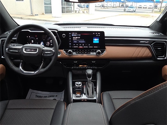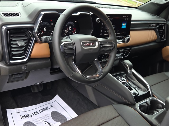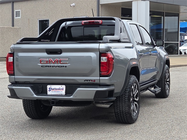 CARFAX One-Owner. Clean CARFAX. 2025 GMC Canyon Sterling Metallic 4D Crew Cab 4WD AT4 8-Speed Automatic Local Trade In, Canyon AT4, 2.7L I4 Turbocharged DOHC 16V LEV3-SULEV30 310hp, 4WD, Jet Black/Timber Leather, 120-Volt Bed Mounted Power Outlet, 2 Rear USB Ports in Center Console (Charge-Only), 6-Way Power Passenger Seat Adjuster, 8-Way Power Driver Seat Adjuster, Apple CarPlay/Android Auto, AT4 Premium Package, Automatic Emergency Braking, Bed-Mounted Tubular Sport Bar (LPO), Black Badges (LPO), Blind Zone Steering Assist w/Trailering, Canyon Pro Safety, Canyon Safety Plus Package, Driver & Front Passenger Illuminated Visors, Driver & Front Passenger Ventilated Seats, Driver Memory, Driver Mode Selector, Driver Seatback Map Pocket, Dual-Zone Auto Climate Control Air Conditioning, EZ-Lift & Lower Tailgate, Following Distance Indicator, Forward Collision Alert, Front LED Fog Lamps, Front Pedestrian & Bicyclist Braking, Heated Driver & Front Passenger Seats, Heated Steering Wheel, Inside Rear-View Auto-Dimming Mirror, IntelliBeam Automatic High Beam On/Off, Interior Overhead Courtesy Light w/Dual Reading Lamp, Lane Keep Assist w/Lane Departure Warning, MultiStow Tailgate Storage Compartment, Navigation System, Nightfall Edition, Perforated Leather-Appointed Seat Trim, Power Driver Lumbar Control Seat Adjuster, Power Inner Sliding Glass Sunroof w/Manual Shade, Power Passenger Lumbar Control Seat Adjuster, Preferred Equipment Group 4SG, Rear Center Fold-Down Armrest w/2 Cupholders, Rear Cross Traffic Braking, Rear of Console 120-Volt Power Outlet, Remote Vehicle Starter System, Rocker Panel Protector (LPO), Tailgate Keyed Cylinder Lock, Tilt & Telescopic Manual Steering Column, Ultrasonic Rear Park Assist, Wheels: 20" x 9" Machined Faced Aluminum, Wireless Phone Charging. Odometer is 3401 miles below market average! 2.7L I4 Turbocharged DOHC 16V LEV3-SULEV30 310hp