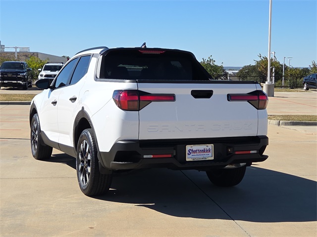 CARFAX One-Owner. 2025 Hyundai Santa Cruz SEL 4D Crew Cab SEL Atlas White 2.5L I4 8-Speed Automatic with SHIFTRONIC FWD This vehicle comes well equipped with Option Group 01, Santa Cruz SEL, 4D Crew Cab, 2.5L I4, 8-Speed Automatic with SHIFTRONIC, FWD, Atlas White, Black Artificial Leather, Auto High-beam Headlights, Brake assist, Bumpers: body-color, Delay-off headlights, Electronic Stability Control, Exterior Parking Camera Rear, First Aid Kit, Fully automatic headlights, Heated door mirrors, Mud Guards, Panic alarm, Power door mirrors, Rear step bumper, Security system, Speed control, Spoiler, Tailgate Protector, and Turn signal indicator mirrors.
