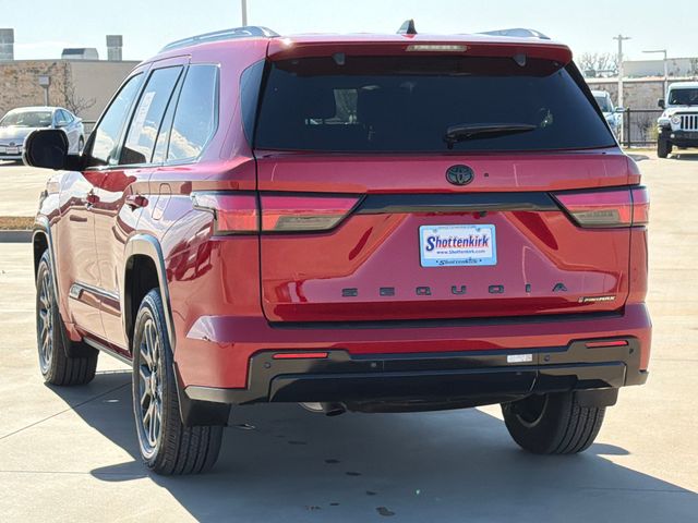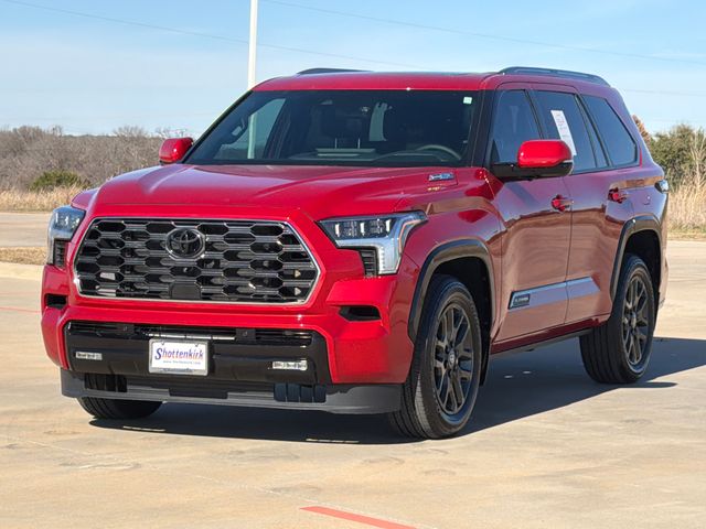 CARFAX One-Owner. 2025 Toyota Sequoia Platinum 4D Sport Utility Platinum Supersonic Red V6 Hybrid 10-Speed Automatic 4WD This vehicle comes well equipped with 4D Sport Utility, V6 Hybrid, 10-Speed Automatic, 4WD, Supersonic Red, ABS brakes, Active Cruise Control, Alloy wheels, Compass, Electronic Stability Control, Front dual zone A/C, Heated & Ventilated Front Seats, Heated door mirrors, Heated front seats, Heated rear seats, Illuminated entry, Low tire pressure warning, Navigation system: Drive Connect (1 year trial) includes Cloud Navigation with real time traffic and Google POI, Power Liftgate, Power moonroof, Premium Leather Seat Trim, Remote keyless entry, and Traction control.